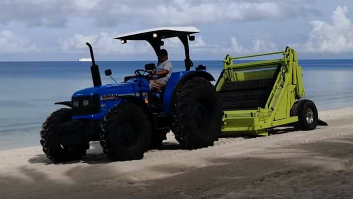 トラクターでビーチを清掃してます。